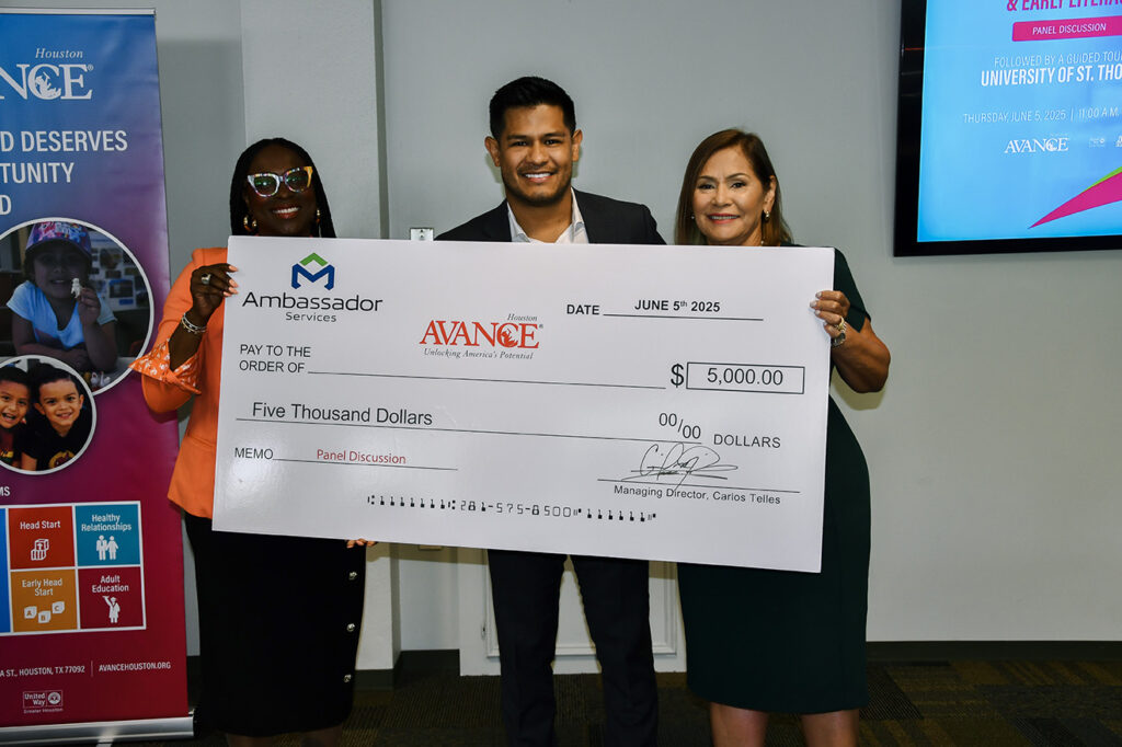 This panel discussion would not have been possible without the generous support of our sponsors. We sincerely thank the University of St. Thomas for hosting and sponsoring the event, Ambassador Services, LLC, and H-E-B for their continued partnership in supporting programs that break generational trauma and poverty cycles.